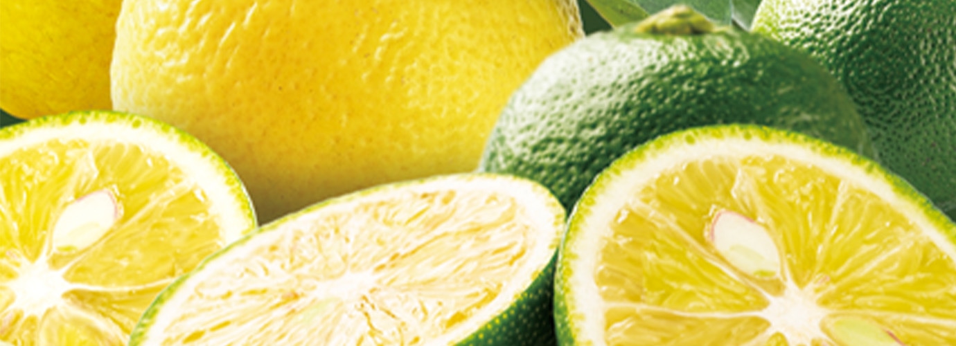 4つの和柑橘(シークワーサー、かぼす、すだち、ゆず)