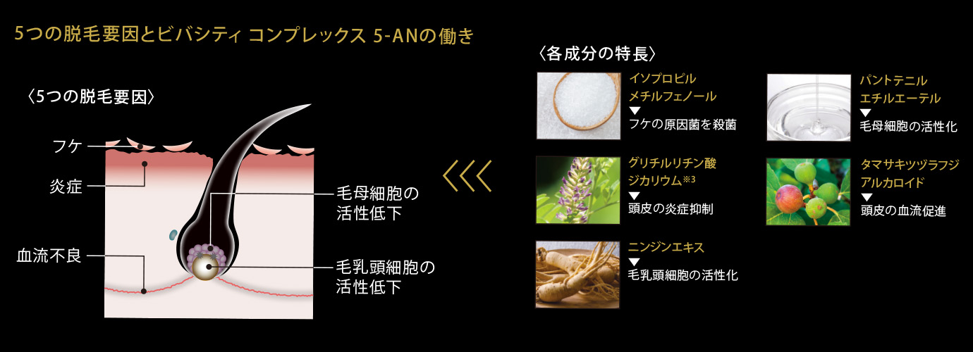 5つの脱毛要因にアプローチするビバシティ テクノロジー※