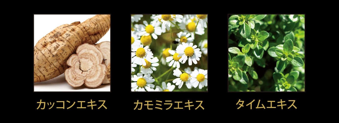 ※2 カッコンエキス、カモミラエキス(1)、タイムエキス(1)[湿潤成分]