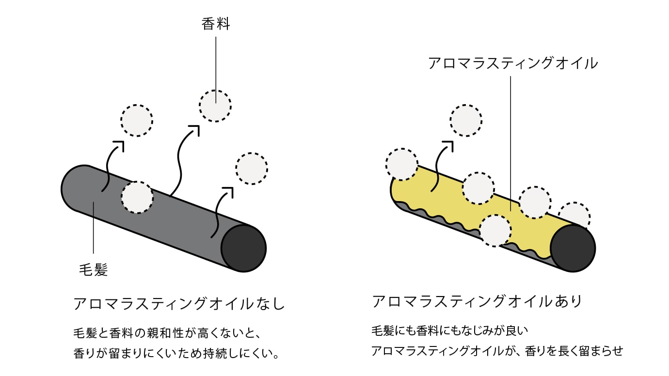アロマラスティング処方で髪と香りの親和性を高め、ほのかな香りの持続を実現。
