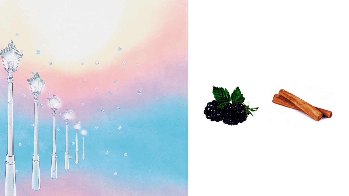 雨の静けさ漂うサンダルウッドと弾むステップを表現した可愛らしいベリー