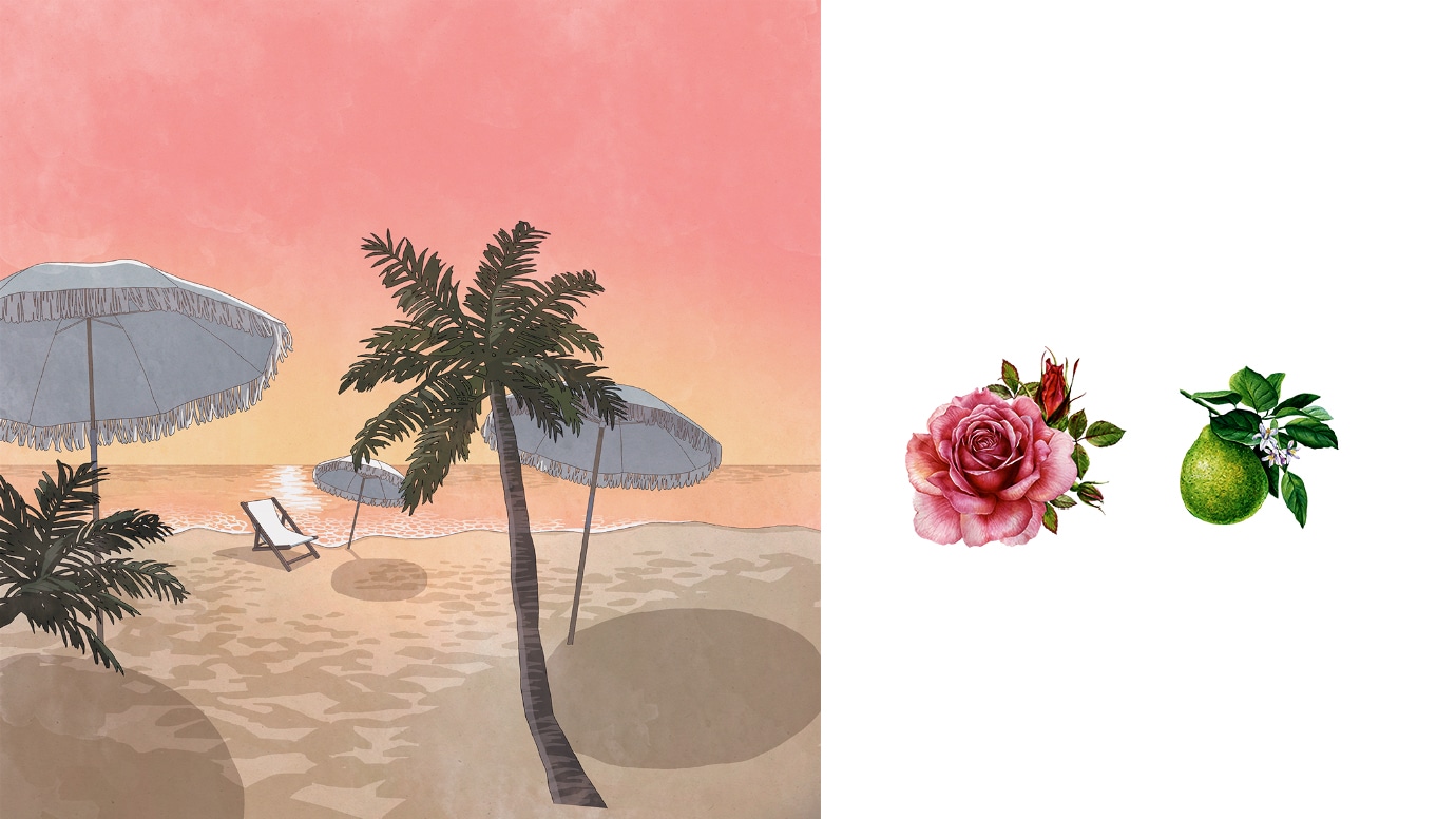 夕陽を表現したやわらかなローズと海風を思わせるグリーンなシトラス
