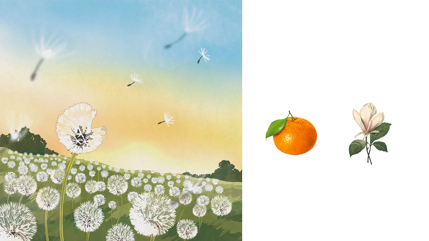 やわらかな陽気を表現したマンダリンと風に舞う綿毛のようなマグノリア