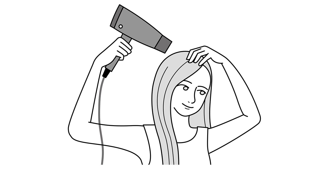 まずはクセがつきやすい前髪を左右に軽くこすりながら乾かします。