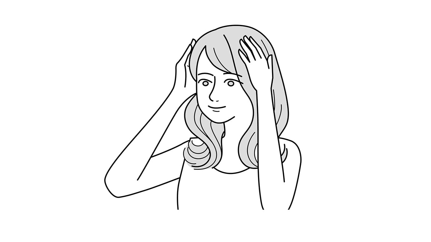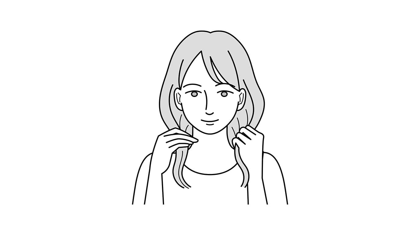 手に残ったオイルを、顔まわりと髪の表面につけます。根元につかないように毛先を持ち上げながらつけることがポイント。