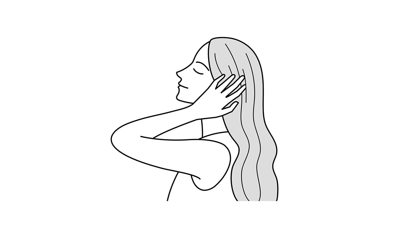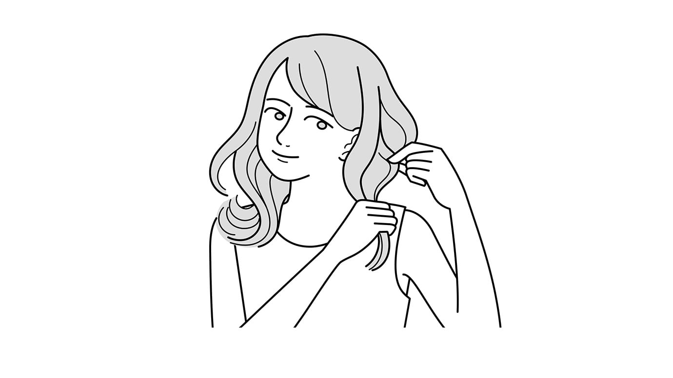 やわらかなまとまりを表現するために、毛先まで指をすべらせます。
