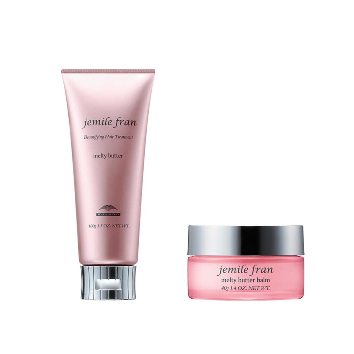 バームタイプの洗い流さないトリートメント。二種類の植物性バターを配合し、もっとうるおい、まとまる髪に。※ハンドクリームとしても使えます。