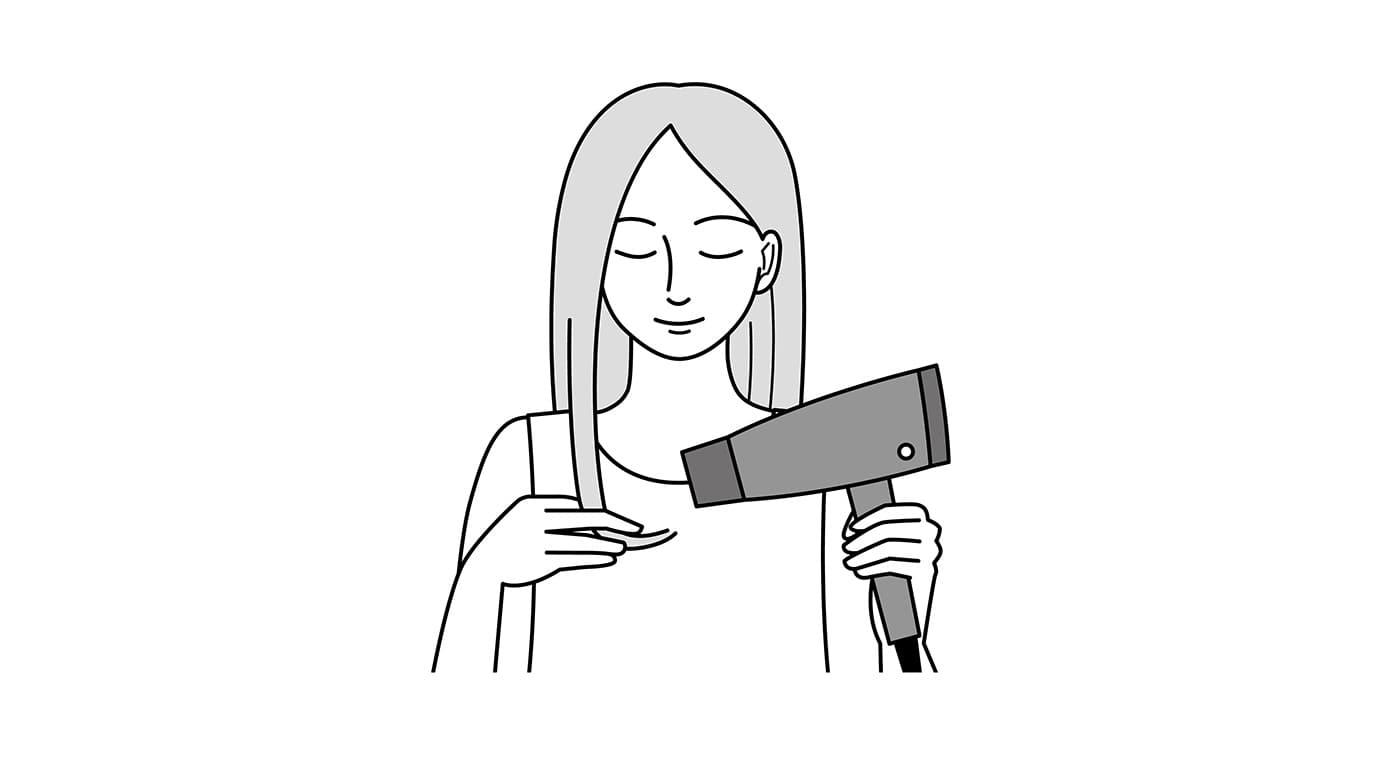 毛先をつかんで、顔の内側に向かって指でワンカールを作ったら、カールの内側にドライヤーの熱を加えます。