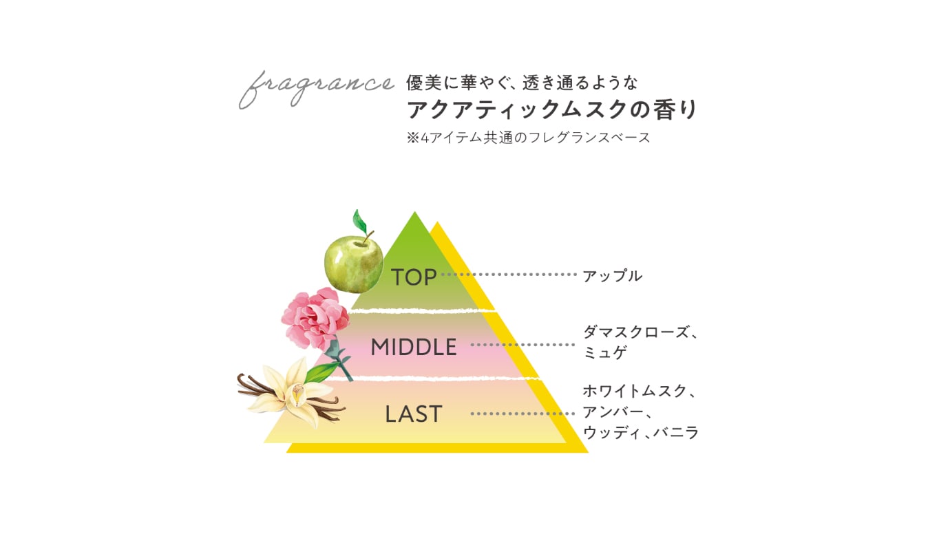 優美に華やぐ、透き通るような「アクアティックムスク」の香り