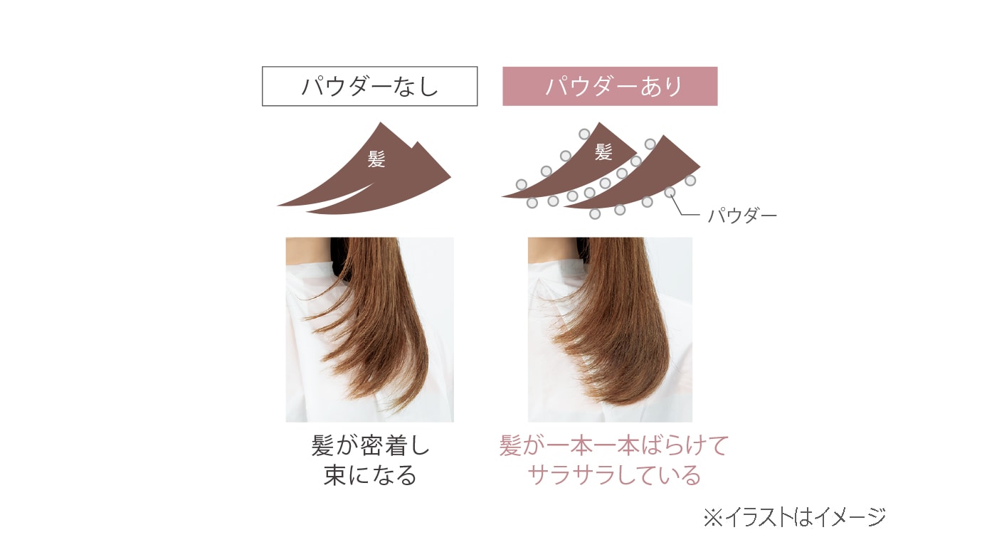 なめらかな感触が特長のスムースセラムパウダー※1配合。ブロー仕上げのようなサラサラ質感を創ります。