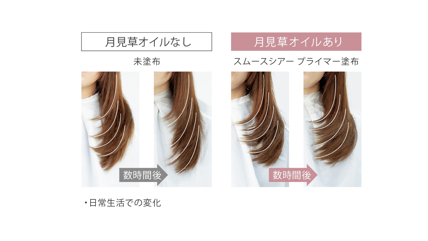 アイロンなどの熱で性質が変わる月見草オイル※3配合。時間が経っても、レイヤースタイルのゆるいカールをキープできます。