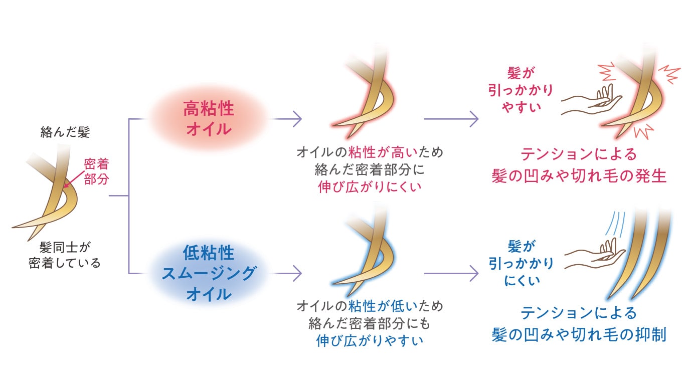 不均一なハイダメージ毛でも引っかかりなく乾かせ、切れ毛を抑制する「スムージングオイル※3」