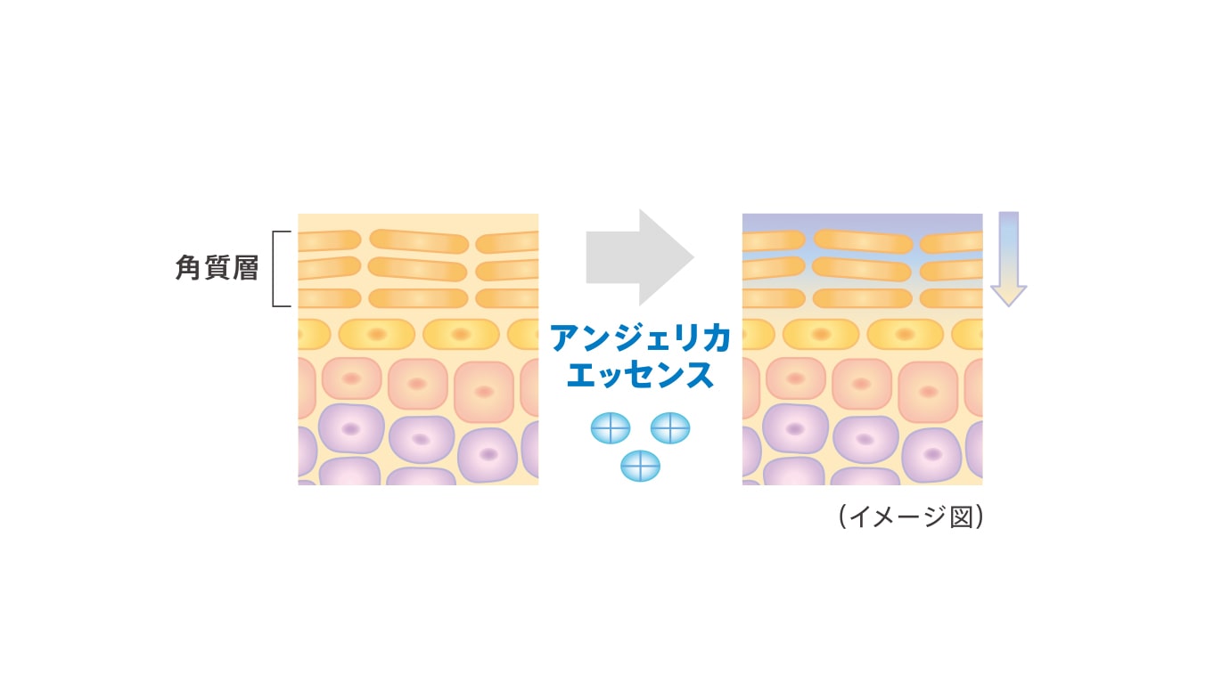 年齢と共に抗酸化力が低下した地肌には活性酸素がたまり、カルボニル化(酸化の一種)が進行します。酸化した地肌は乾燥し、毛髪はパサつきツヤも低下します。アンジェリカアクティローバの根から抽出されたアンジェリカエッセンス※が地肌の角質層に浸透して保湿。地肌環境を守り、健やかな地肌を保ちます。