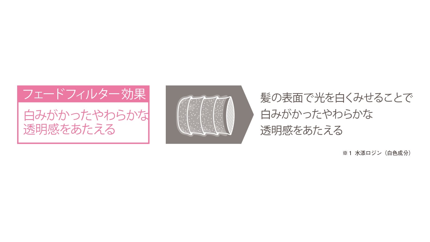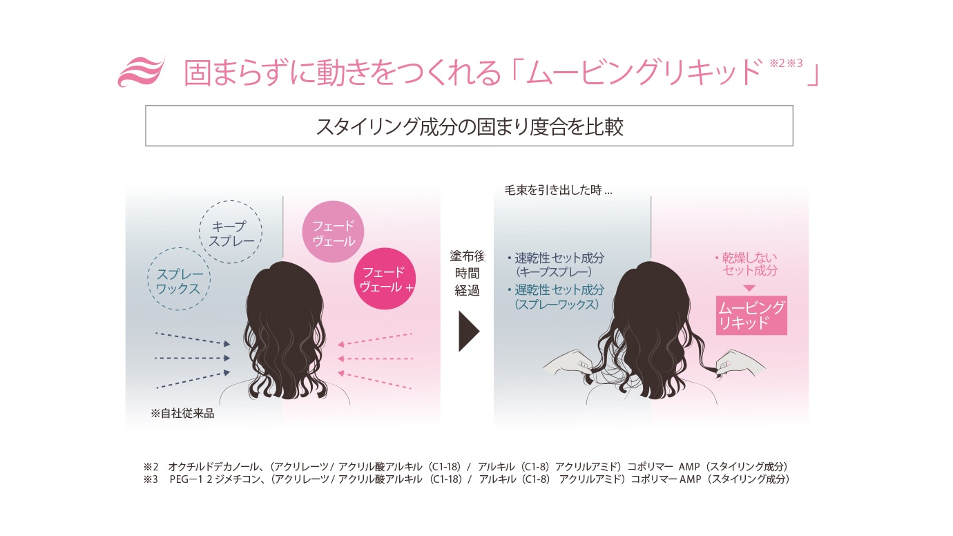※2 オクチルドデカノール(アクリレーツ/アクリル酸アルキル(C1-18)/アルキル(C1-8)アクリルアミド)、コポリマーAMP(スタイリング成分)