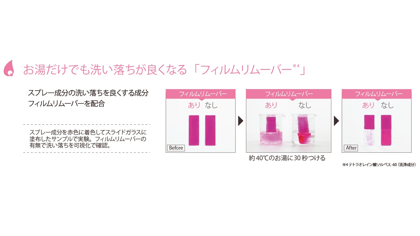 フィルムリムーバー※4配合により、お湯だけでも洗い落ちがよくなります。