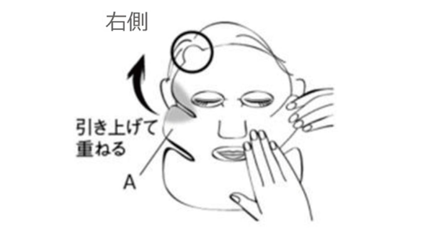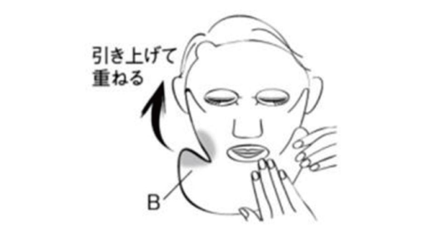 Bを引き上げ、頬のシートと重ねます。(左右行います。)