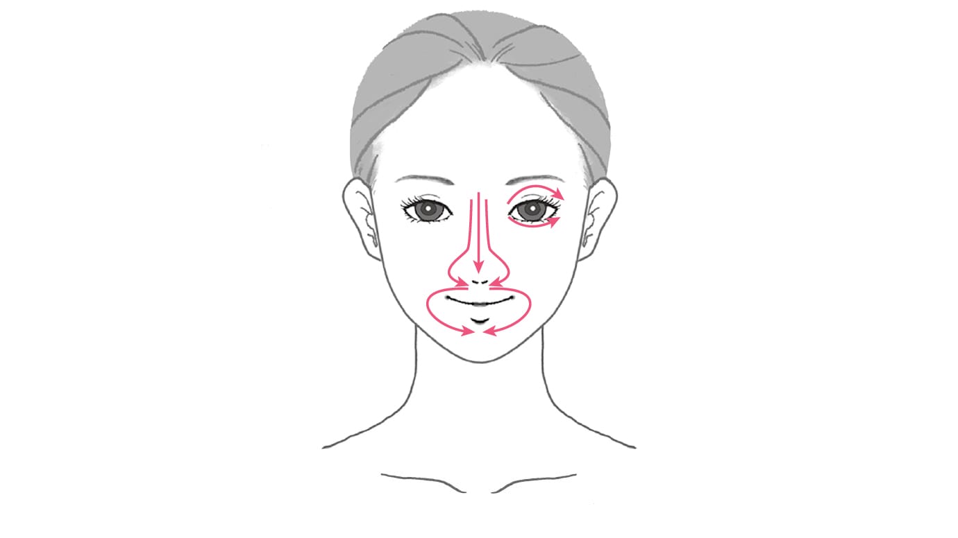 鼻筋、小鼻、口の周り、目の周りの順にのばします。