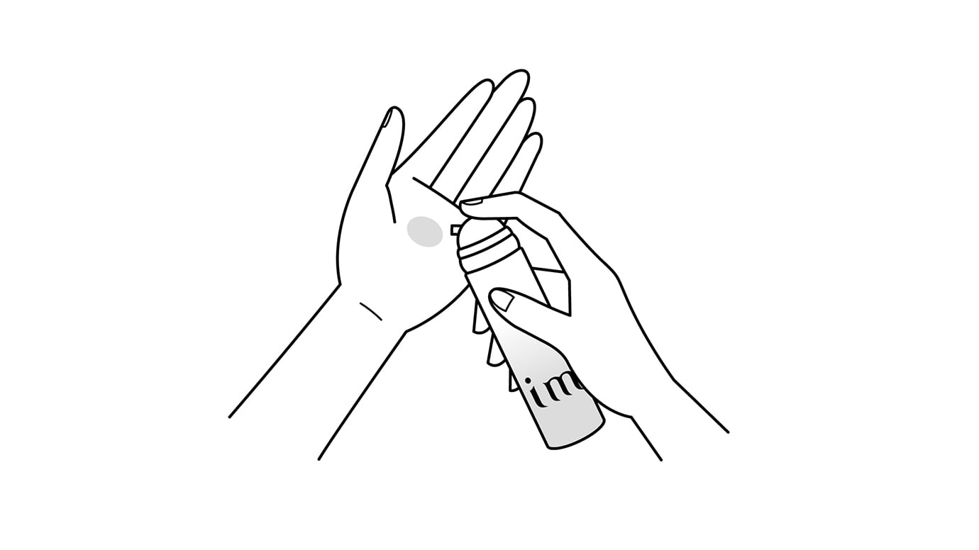 容器を立てた状態で、ノズルを手のひらやスポンジから1cmくらいまで近づけ、軽くおしてブルーベリーサイズを手に取ります。